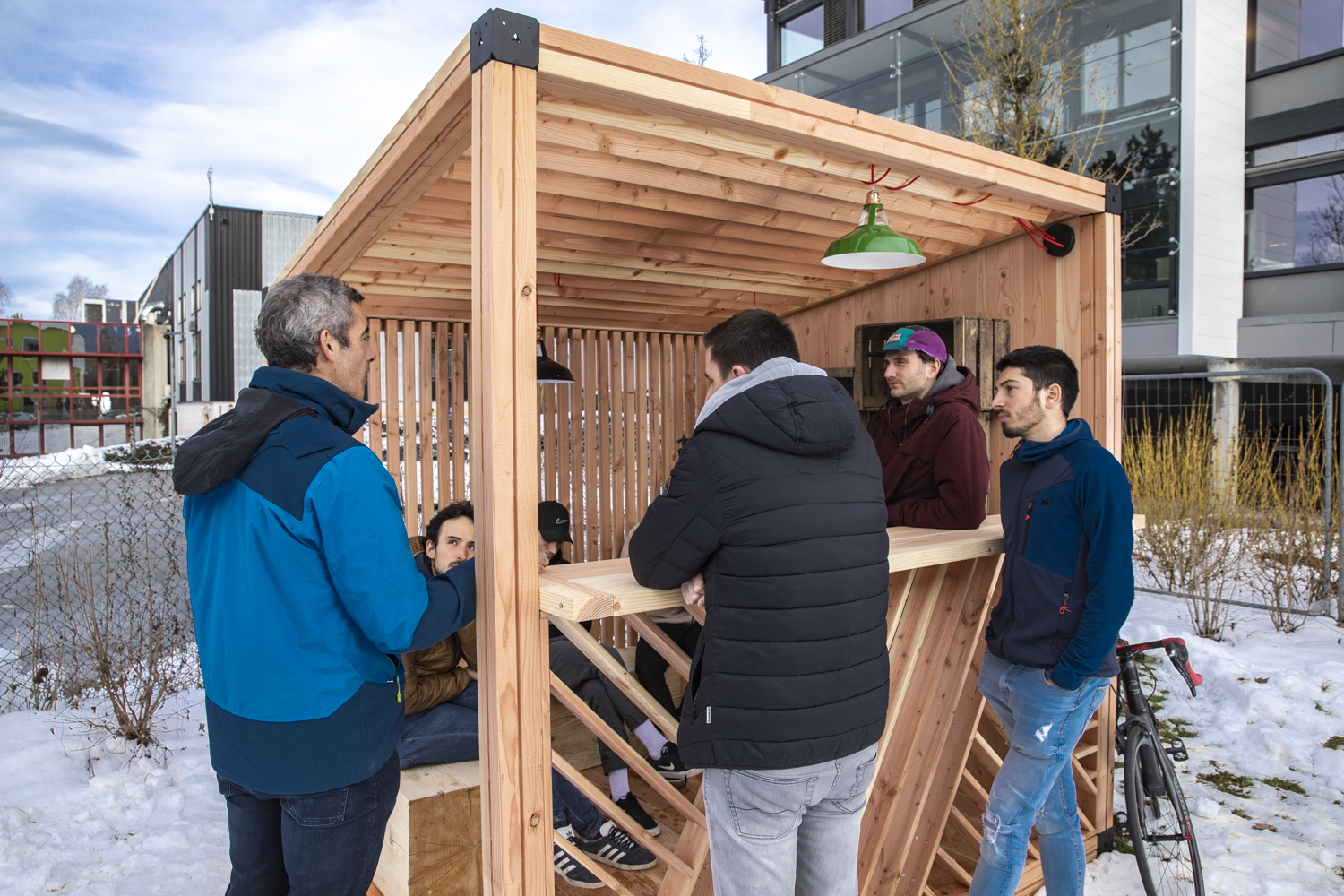 Pour installer un espace agréable à l'extérieur, nous vous conseillons de créer un coin alliant travail et détente en ajoutant une table et des chaises confortables. Sinon, pour un coin chaleureux, en bois, fabriqué de façon durable et comprenant tous les indispensables pour travailler, déjeuner ou prendre un moment de pause, vous pouvez tout simplement installer une French Cabine ! Cet espace mobile, à côté de vos bureaux, deviendra rapidement un coin unique et indispensable.
